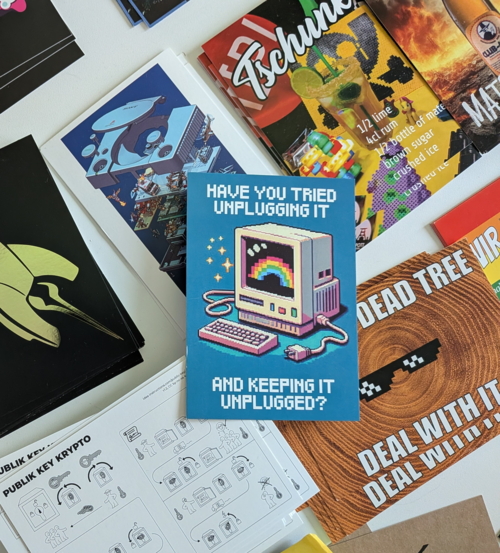 Das Foto ist entstanden auf den Tagen der digitalen Freiheit in Tübingen im Juli 2025. "Digitale Freiheit", das bedeutet, sich mündig der Technik zu bedienen - und sich eben auch manchmal von ihr los zu machen. Daran erinnert diese Postkarte.