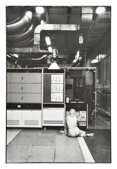 Ein erstes Beispiel dafür sind die ausgestellten Bilder des Sachfotografen *Georg Eckelt* (1932–2012). Nachdem die Staatsführung der DDR 1963 beschlossen hatte, einen eigenen Großrechner zu bauen, wurde der Form- und Produktgestalter *Karl Clauss Dietel* (1934–2022) damit beauftragt, diesen zu gestalten. Seine Entwürfe und Studien zur räumlichen Anordnung des Großrechners sowie zur vorgesehenen Nutzung hat der Fotograf festgehalten. Sie zeigen, dass Dietel das später R 300 genannte System offen gestalten wollte, sodass seine Bauteile und seine Funktionsweise sichtbar gewesen wären. Allerdings konnte er sich mit diesem Vorschlag nicht durchsetzen, da die DDR-Staatsführung in technischer Hinsicht stets um Geheimhaltung bemüht war.