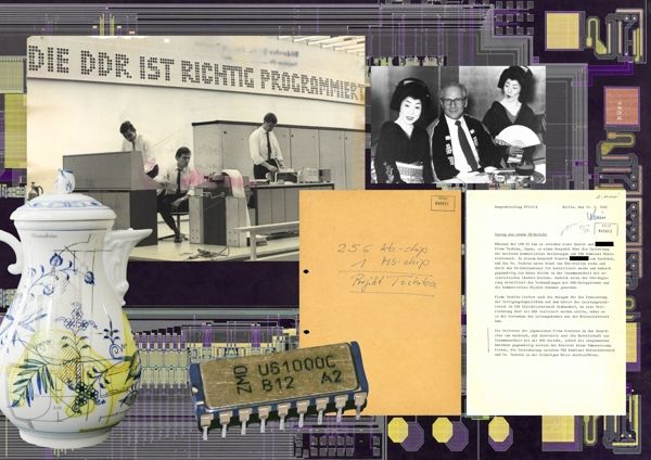 *Antye Guenther* beschäftigt sich in ihrem Werk „OPERATION ZWIEBELMUSTER“ mit dem CoCom-Embargo gegen die sozialistischen Staaten und den alternativen Wegen, die technische Produkte deshalb nehmen mussten. So brachte die Stasi den japanischen Chiphersteller Toshiba dazu, Pläne und Bauteile in die DDR zu schmuggeln. Die Legende besagt, dass die Toshiba-Manager nicht nur mit Geld, sondern auch mit Meißner Porzellan bezahlt wurden. Dies nimmt die Künstlerin zum Ausgangspunkt einer spekulativen Arbeit, in der ein Kaffeeservice zum geheimen Datenträger für hochsensible Informationen wird. Sie verwendete für ihr Werk sowohl Original-Stasiakten als auch fiktives Recherchematerial, um Elemente des Bauplans eines Chips per Glasur auf das Zwiebelmuster-Dekor des Porzellans zu übertragen.
