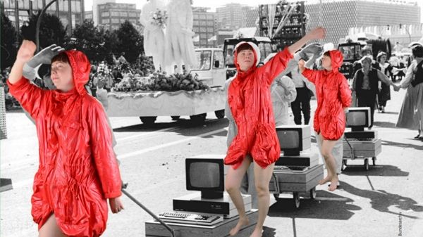 Abschließen möchte ich mit einigen Gedanken zum Essay von Jan Wenzel, der die Ausstellung durchzieht und ihr einen roten Faden verleiht. Der Text überzeugt durch seine Einordnung des Geschehens und ermöglicht es allen Besucher:innen, die künstlerischen Arbeiten in den geschichtlichen Kontext einzuordnen. Aus der Historiker:innenperspektive wären allerdings einige zusätzliche Literaturangaben zu wünschen gewesen, schreibt sich der Autor doch in ein bestimmtes Geschichtsnarrativ ein, ohne dass die Leser:innen erfahren, worauf sich sein Wissen stützt.
